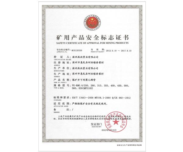 礦用產品安全標志證書